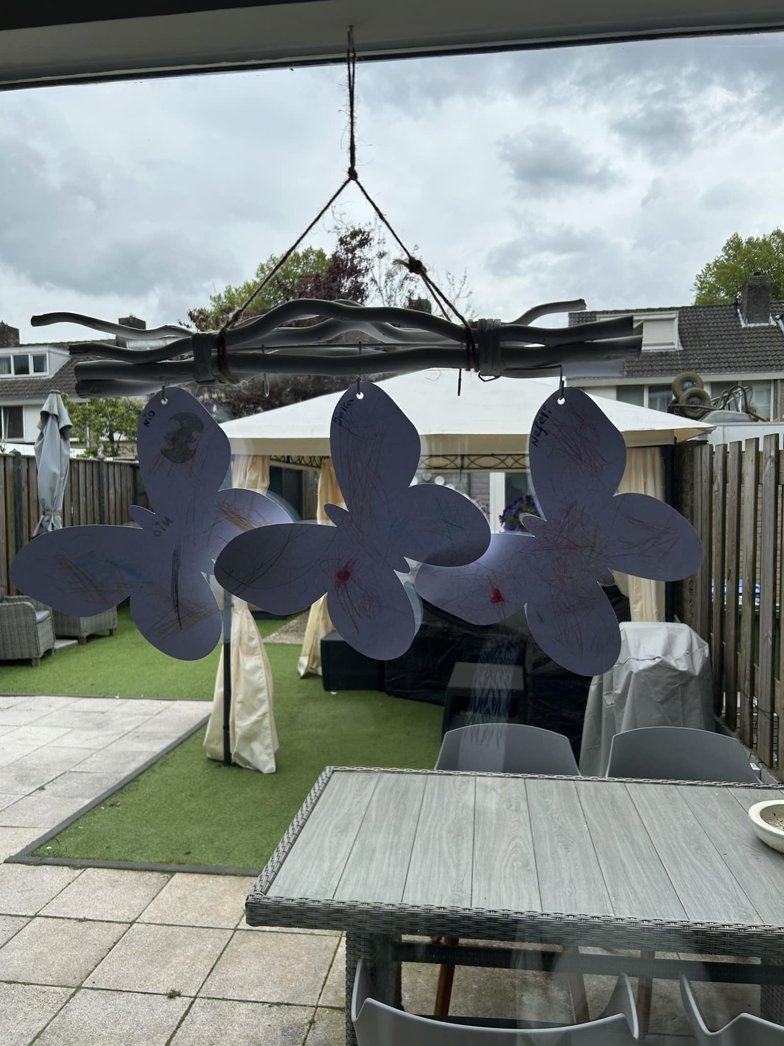 Voor buiten vertaalt zich dit naar degelijk speelgoed, waar mogelijk gecertificeerd. Zo hebben wij een aantal Pikler driehoeken, maar ook loopplanken, ballen en speeltafels voor buiten die iedere keer gevuld worden met een ander materiaal.